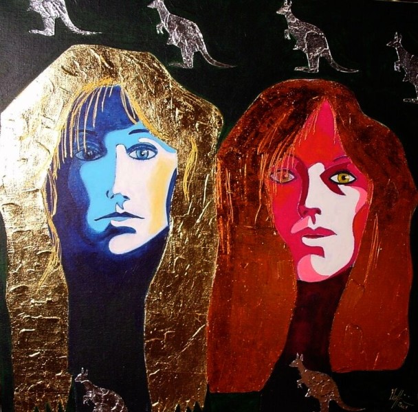 FRIDA & AGNETHA tecnica mista su tela 100x100